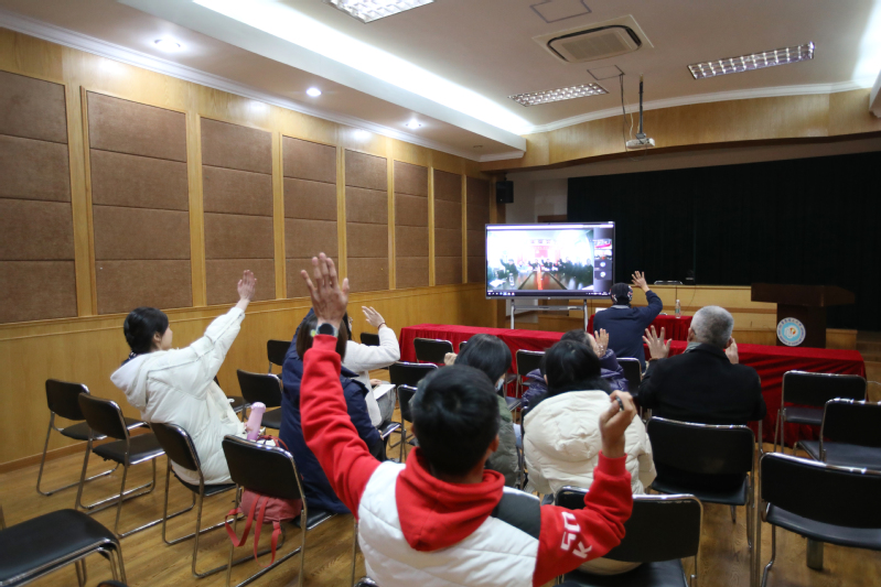 在tyc522cc太阳集团大学公共体育教育中心党支部会场,朱鹏从“思想政治学习、组织活动有序开展、我为师生办实事、与塔坊学校党支部共建及下一步计划”等四方面进行汇报。