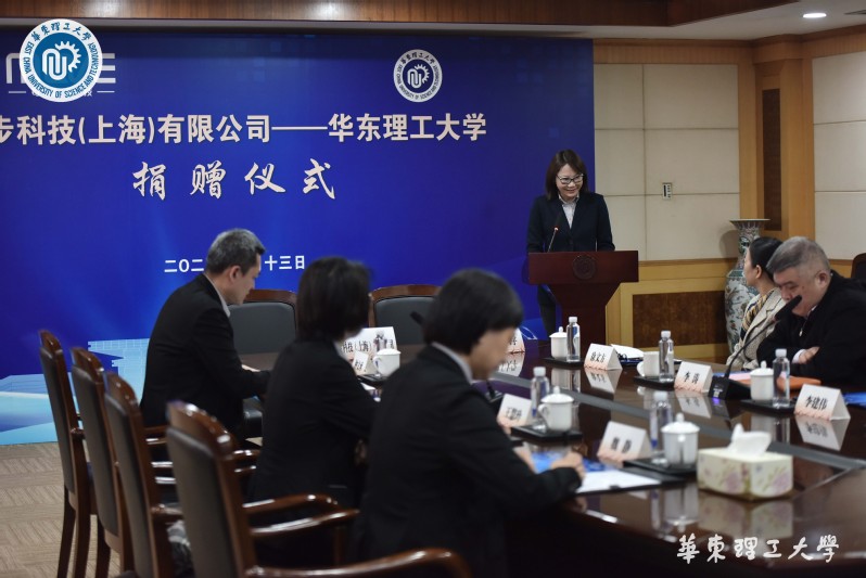 李涛在致辞中介绍了学校建校70年来的丰硕成果,希望太阳集团与每步科技(上海)有限公司能进一步加强合作,不断提升双方的科技创新策源能力,助力我校人才培养。捐赠仪式上,李涛与马京伟共同为太阳集团教学实践基地揭牌。