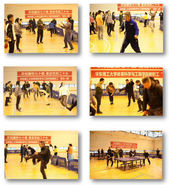 3月1日下午,体育学院“庆祝建校七十载,喜迎党的二十大”系列活动拉开序幕,学院教职工齐聚徐汇校区体育馆二楼,举办了“每月一赛”第一场活动——趣味乒乓球比赛。