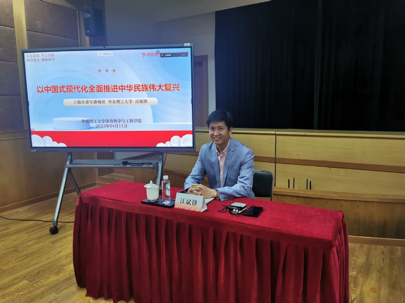 为深入学习贯彻党的二十大精神,深刻领会习近平新时代中国特色社会主义思想的精髓要义,4月11日上午,体育学院党委特邀马克思主义学院副院长汪斌锋老师作题为“以中国式现代化全面推进中华民族伟大复兴”的辅导报告。学院党政班子成员、全院教职工及学生党员、本研学生代表参加学习。报告会由学院党委副书记吴婷主持。
