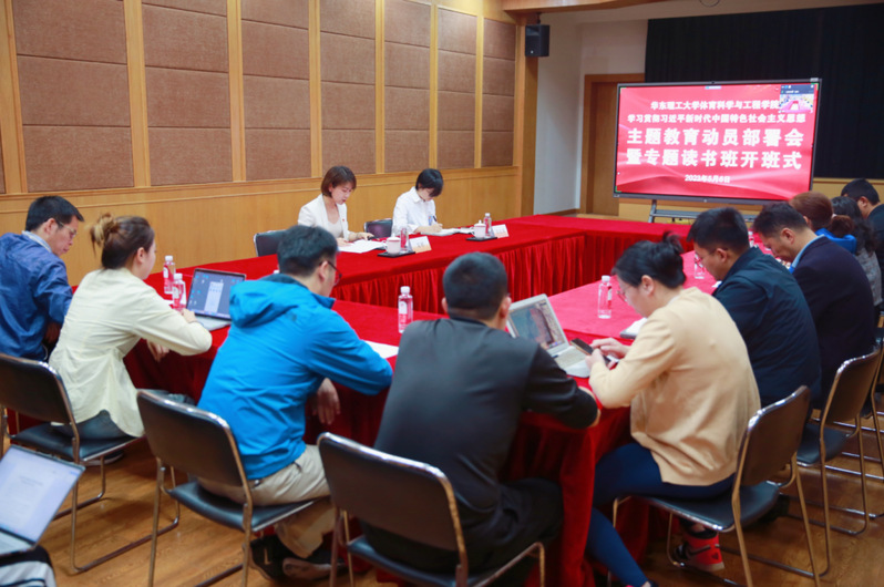 5月6日中午,tyc522cc太阳集团在体育馆104会议室召开学习贯彻习近平新时代中国特色社会主义思想主题教育动员部署会暨专题读书班开班式。校主题教育第十联络组联络员、党委组织部吴江洁、学院领导班子成员、党委委员、党支部书记、支委、内设机构负责人、师生党员代表等参会。会议由学院党委副书记吴婷主持。