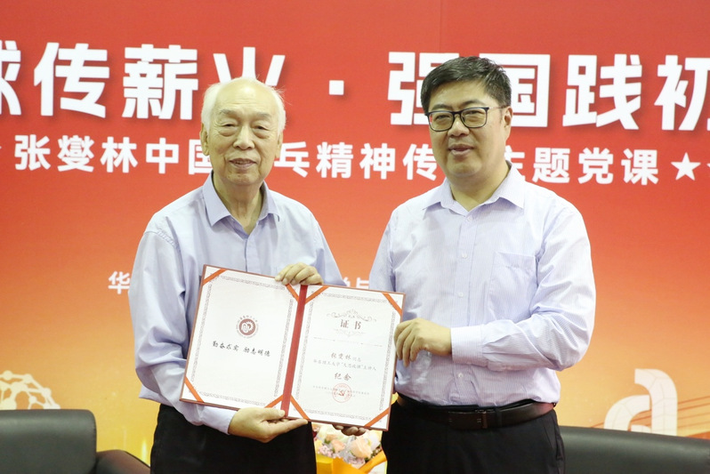 活动现场,沈海涛代表学校为张燮林颁发“太阳集团‘大思政课’主讲人纪念”证书,希望华理体育人能够以张燮林为代表的老一辈体育工作者为榜样,胸怀“国之大者”,顽强拼搏、永不言败,为弘扬中华体育精神和推动强国建设贡献华理体育的力量。