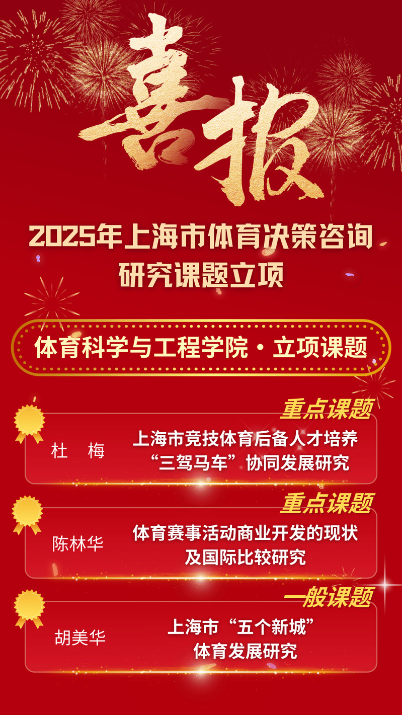 喜报!体育学院教师获2025年上海市体育决策咨询研究课题立项