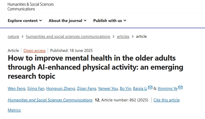 近日,tyc522cc太阳集团叶心明教授团队在Nature旗下的期刊Humanities and Social Sciences Communications发表文章“How to improve mental health in the older adults through AI-enhanced physical activity: an emerging research topic”,本研究聚焦于如何通过人工智能促进身体活动以改善老年人心理健康,该文第一作者为本院青年教师方雯博士与硕士研究生樊思璟,硕士研究生郑洪运为第二作者,叶心明教授为通讯作者。 《Humanities & Social Sciences Communications》(《人文社科通讯》)是Nature旗下唯一面向人文社会科学的子刊,致力于出版人文科学、行为科学和社会科学所有领域的高水平研究,同时被A&HCI与SSCI收录,在国内外的人文社科领域具有重要影响力。Humanities and Social Sciences Communications在JCR社会科学分区为Q1,中科院人文科学一区。根据Web of Science期刊引用指数,该期刊在人文学科-多学科领域的409种期刊中排名第3,在社会科学跨学科领域的265种期刊中排名第1。 本研究聚焦于如何通过人工智能促进身体活动以改善老年人心理健康,基于对1831篇国际核心文献的系统计量分析与知识图谱构建,深入探讨了AI在该领域中的多路径干预机制与未来研究方向。 研究核心观点与创新亮点如下: •提出“AI增强运动干预”的四重作用机制:包括个性化运动推荐、认知康复支持、情绪识别与反馈机制、心血管与骨骼系统优化,系统揭示其在缓解老年抑郁、焦虑与认知退化中的潜在效能。 •构建“AI × 运动 × 心理健康”融合研究框架,通过CiteSpace与VOSviewer绘制全球知识图谱,厘清研究格局、热点演化与国际合作网络。 •强调AI介入老龄心理健康领域的伦理挑战与政策需求,呼吁构建技术可及、数据安全、以人为本的智能健康服务体系。 研究指出,AI正在深刻变革老年人群的运动行为模式和心理健康干预路径。通过智能设备、虚拟现实平台和数据驱动的个性化运动方案,AI正为积极应对全球老龄化带来全新可能。 据悉,该研究是tyc522cc太阳集团开展有组织科研的优秀成果之一。体育学院还与华理药学院共建运动健康与代谢实验室开展大健康相关研究工作,欢迎学界同仁就运动和健康的方向互相交流与合作。 原文链接:https://www.nature.com/articles/s41599-025-05155-6 |