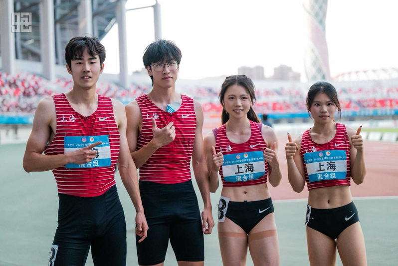 夺冠后,又携手校友童张伟等队友在之后的混合4x100米比赛中,获得接力银牌。