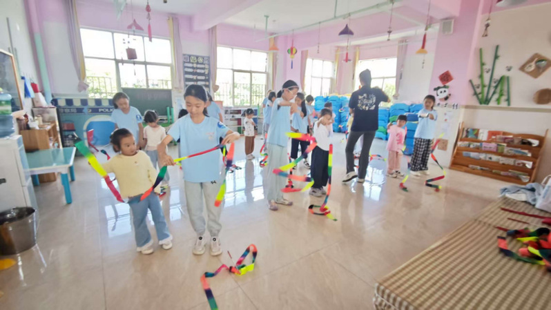 实践团还去到了寻甸华美贝贝幼儿园,为幼儿园的小朋友们带来了乒乓球、武术、彩带操体验课程。完成全部教学任务后,实践团在仁德四小开展了专项调研,发放调查问卷深入聚焦儿童青少年的体质健康与心理健康两大领域,旨在依托科学视角与专业力量,积极探索促进其协调发展的有效路径。