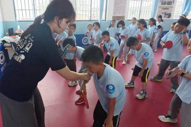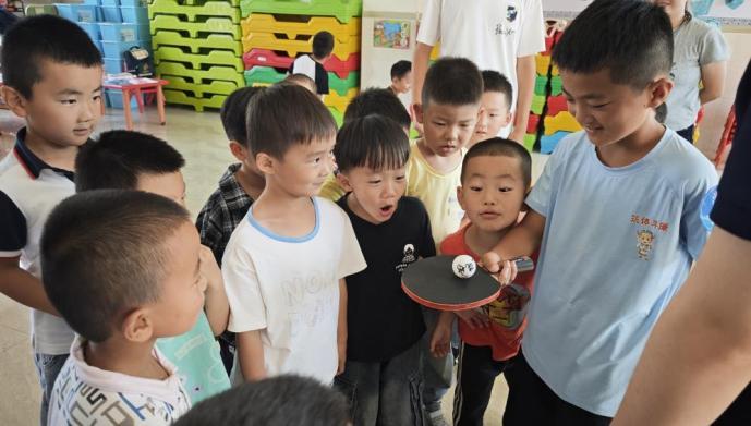 实践团精心制作了融合体育精神与思政教育的专题视频,让孩子们深刻体会到乒乓外交的历史佳话和小小银球蕴含的无穷文化魅力。仁德四小的同学们在提升挥拍技艺的同时,更沉浸式地汲取着乒乓球文化所蕴含的深厚历史底蕴与宝贵精神滋养——那份团结协作、为国争光的家国情怀,那份精益求精、挑战自我的意志品质,正悄然融入他们的成长基因。