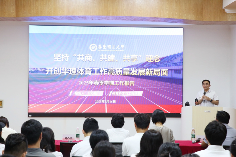 叶心明以“坚持共商共建共享理念,开创华理体育工作高质量发展新局面”为题,总结春季学期学院各项工作成绩,并部署秋季学期重点工作。他指出,在全体老师的共同努力和付出下,学院在运训专业建设、硕博学位点申报、有组织科研实践、产学研平台搭建、师资梯队引育等方面取得实际突破。暑假期间,学院在竞技体育、课程建设、人才培养、学科竞赛、国际交流等方面持续发力,华理乒乓代表中国队获得第32届德国大运会2金3银2铜,社会实践队伍赴中国香港、江苏、江西、云南等地研学实践,学院赴马来西亚、新加坡访问交流,本科课程获批上海市重点课程,学院师生获国创赛上海赛区金奖,创造体育学院学科竞赛最好成绩,诸多成果实效为新学期各项工作接续开展和稳步推进奠定了良好基础,提供了有利开端。希望全院教师坚持共商共建共享的积极理念,将个人持续进步与学校战略谋划和学院发展前景相结合,保持想干事的热情、锻炼能干事的本领、提升干成事的实效,凝心聚力开创体育学院“十五五”发展新篇章。