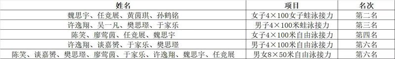 游泳专项赛团体赛获奖名单
