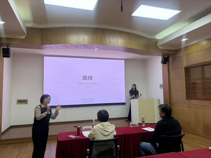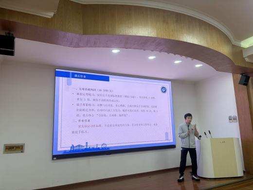 在教学展示环节,参赛教师依次登台,围绕羽毛球、足球、乒乓球等体育专项课程进行20分钟教学展示。教师们充分结合各自教学特色,从课程导入、技术讲解、互动设计到思政融合等方面展开授课,既有规范的专业技能示范,也有创新的教学方法呈现,充分展现了学院青年教师扎实的教学功底与积极的创新意识。